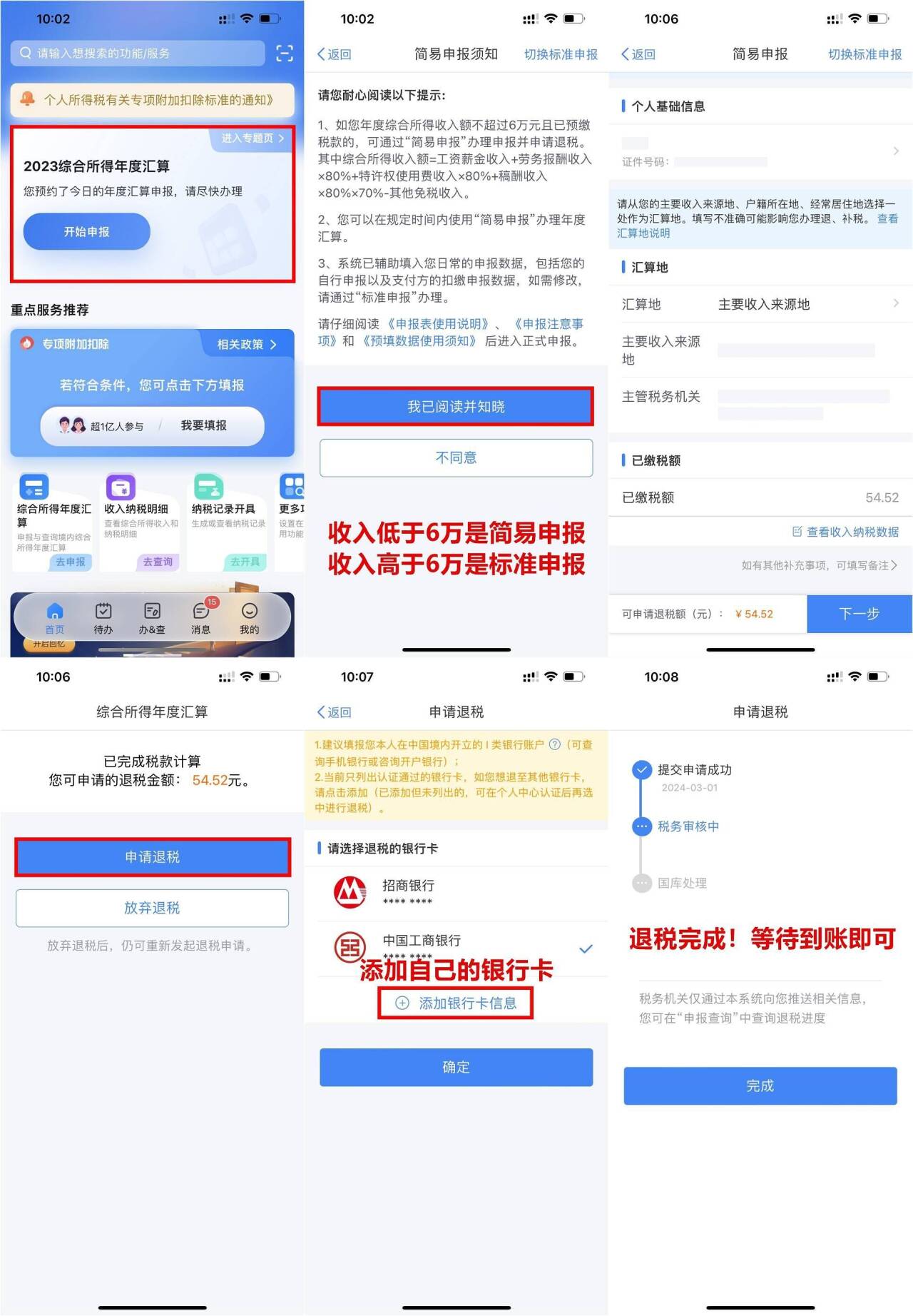 2、首页点“综合所得年度汇算”进入,收入大于6万自动切换到标准申报,小于6万则是简易申报