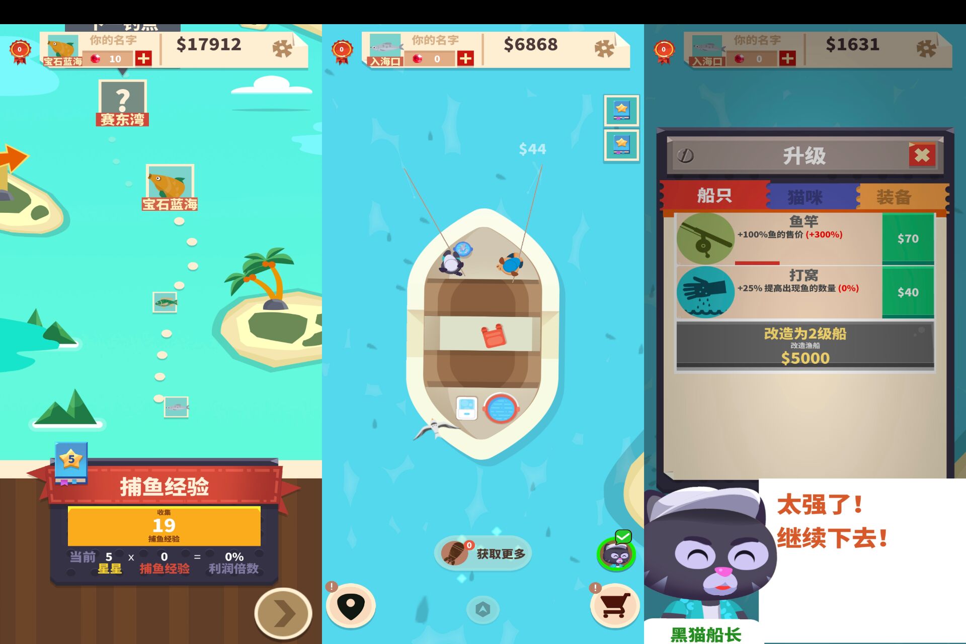 一款非常好玩的模拟钓鱼游戏,游戏的主人公是小猫,你需要通过不断垂钓来获得各种的鱼,钓到的各种鱼也会获得不同的道具,新颖的画风,玩家们还可以准备自己的渔具,越是好的渔具可以获得越珍贵的鱼,感兴趣的小伙伴快来试试看吧。(解锁免广告获得奖励)