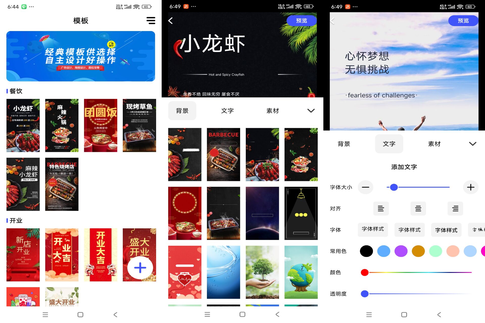 一款在线设计工具,主打海报在线设计,覆盖常见的设计样式,五分钟在线完成设计,手机海报、节日海报、日签、营销长图、店铺首页、公众号封面、名片等等。(解锁VIP功能)