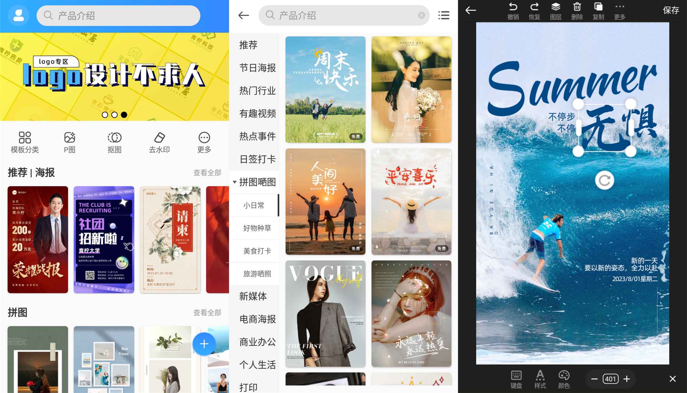 设计不求人,轻松搞定平面设计!PS海报设计APP简单易懂的在线编辑模式,一键生成,将超高清的图片保存到手机相册,海报即刻完成就是如此的简单,已解锁VIP。