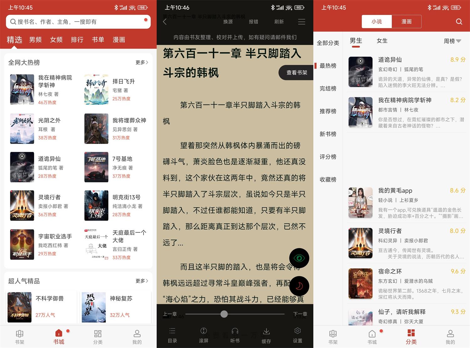 看书神器是一款小说阅读器,网罗天下经典流行小说,藏书丰厚,并对所有书籍做了分类,您能想要的小说,在这里应有尽有,并且集成了强大的搜索功能,可按作者或者书名查询,方便您快速查找需要的书籍。