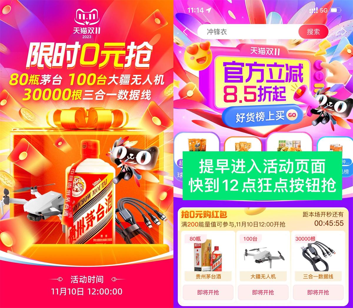 中午12点整0元抢3万条数据线,80瓶茅台和100台大疆无人机!能量值达到200即可参与~纯拼手速