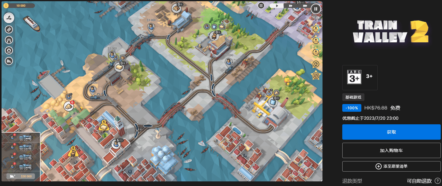 领取地址:https://store.epicgames.com/zh-CN/p/train-valley-2-3606da