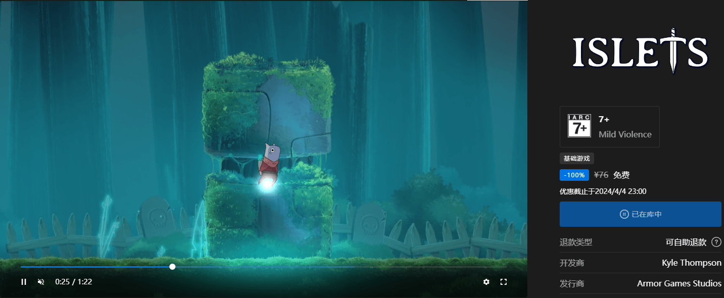 领取地址:https://store.epicgames.com/zh-CN/p/islets-5f2670