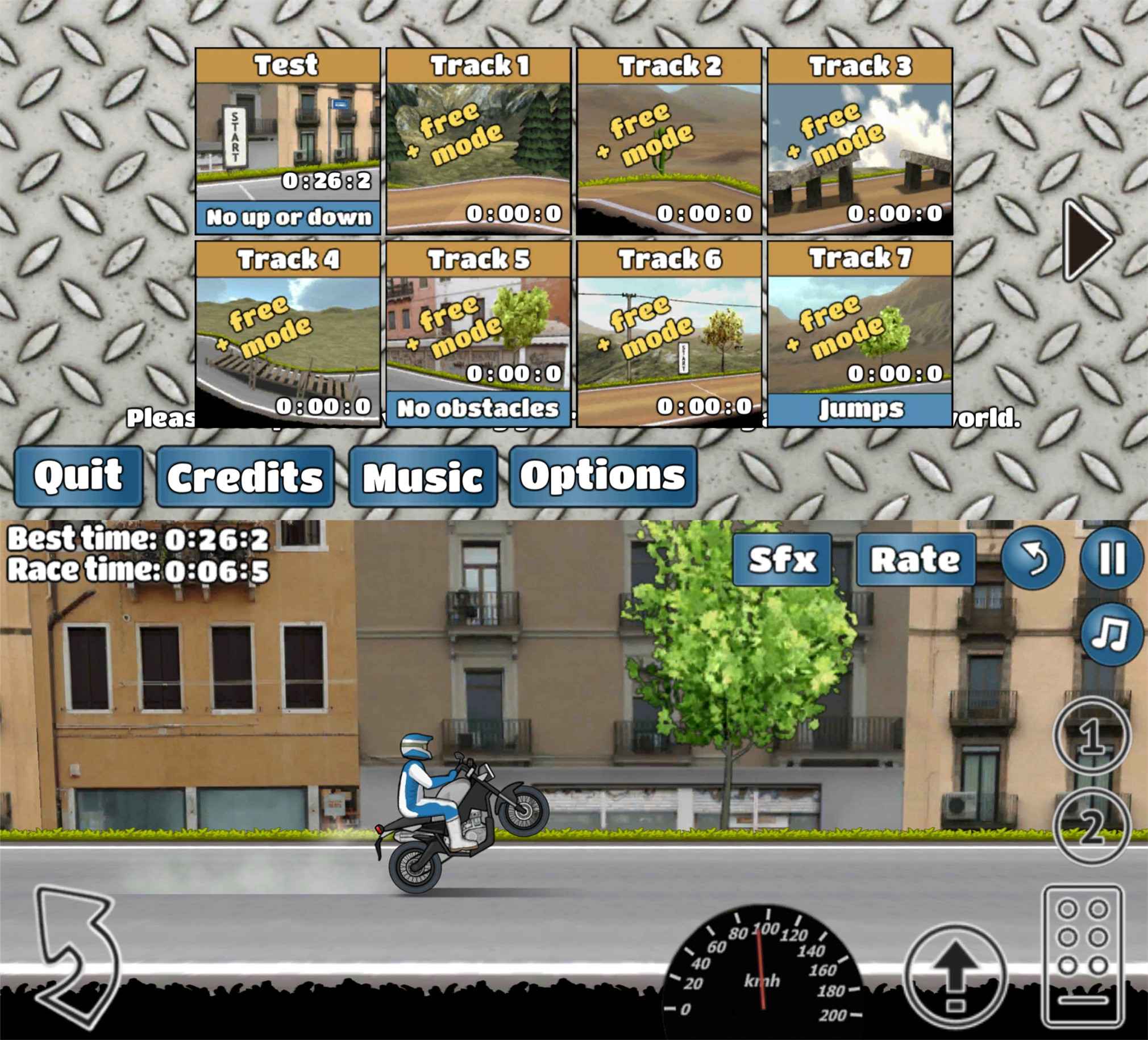 特技摩托挑战是一款超具挑战的特技摩托游戏。在不同的路面各种障碍中,在前轮不着地的状态下一直保持各种特技姿势,挑战你细微的控制和反应能力,看看你是否有能力打破纪录。(去除广告)